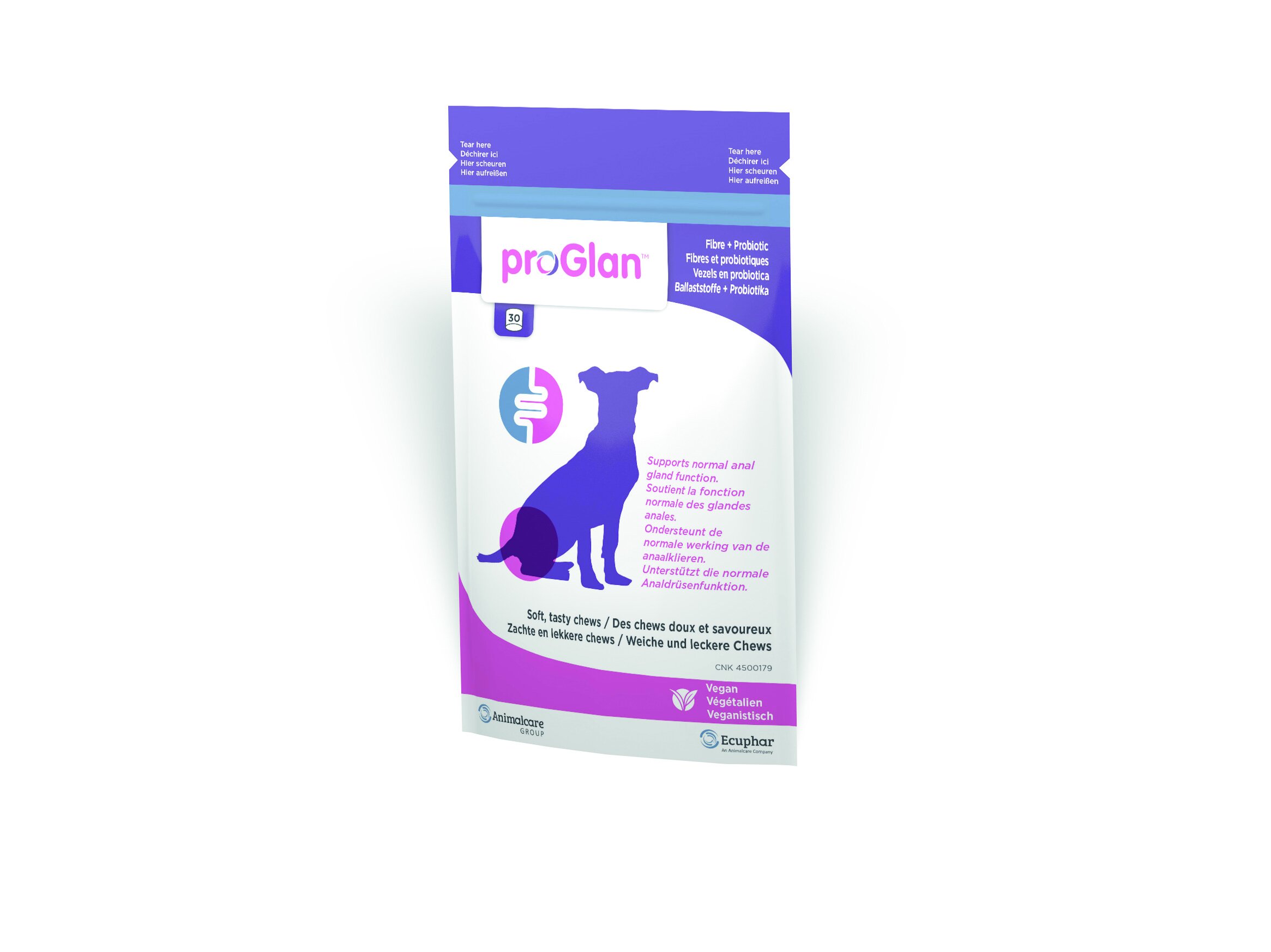 proGlan™ ist ein leicht zu verabreichender, schmackhafter, weicher Chew, der die Kotkonsistenz Ihres Hundes verbessert und die Entleerung der Analdrüsen unterstützt.