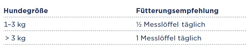 Die Dauer der Unterstützung kann je nach Hund und individueller Situation variieren. Empfehlungen zur Dauer der Gabe finden Sie nachfolgend. Beachten Sie immer den Rat Ihrer Tierarztpraxis.